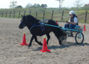 Christel är nyutbildad ponnytrav kusk - hennes dress är inte färdig ännu. Hon blev 3a med Juventus i hennes första lopp, och Juventus har bara startat två gångar tidigare. Han sänkte sitt rekord till 3.21,8, men frågan är om inte han skulle kunna springa fortare om inte han precis börjat betäcker - finns inget fel med viljan i alla fall. En super-kul ponny att köra!